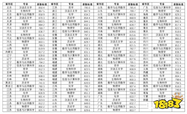2022南京大学强基计划入围分数线:在河北强基计划汉语言文学专业入围分数线为870.3,在浙江强基计划汉语言文学专业入围分数线为847.9,在江西强基计划化学专业入围分数线795.7。