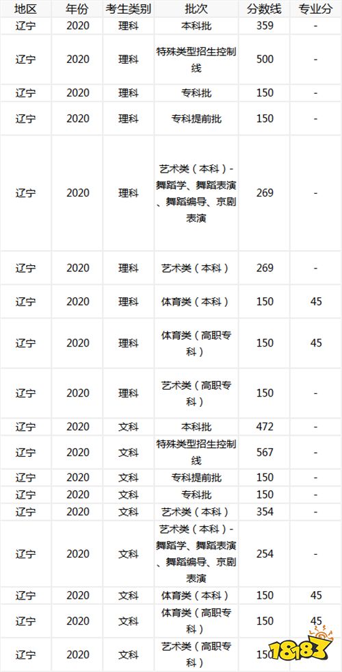 以下是2020年辽宁省高考本科批、特殊类型招生控制线、专科批、专科提前批、体育类(本科)、艺术类(本科)、艺术类(高职专科)、体育类(高职专科)分数线。