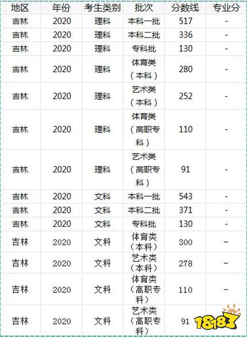 以下是2020年吉林高考本科一批、本科二批、专科批、体育类(本科)、艺术类(本科)、艺术类(高职专科)、体育类(高职专科)的分数线。