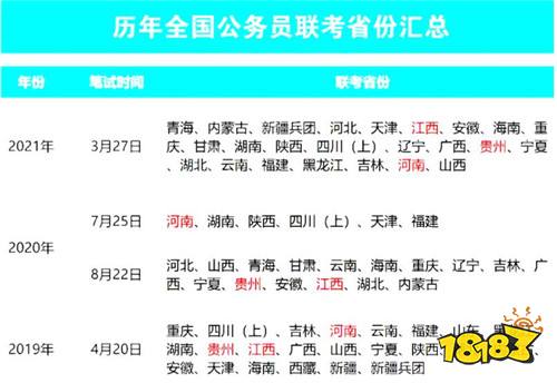 3、历年全国公务员联考省份有哪些?
