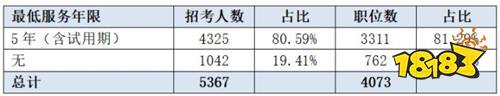 吉林地处东北地区,经济发展程度较低,需要稳定踏实的人才,因此,诸多基层岗位设置了服务年限要求,占比较大,80.59%的名额、81.29%的职位需要最低服务5年才能另谋他就,保持基层人才的稳定性。这也就提醒广大考生,既然选择就安心工作。