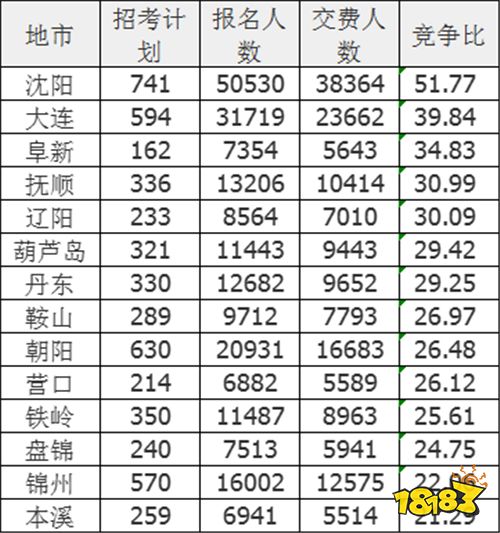 三、2022辽宁公务员考试各地市报名数据统计