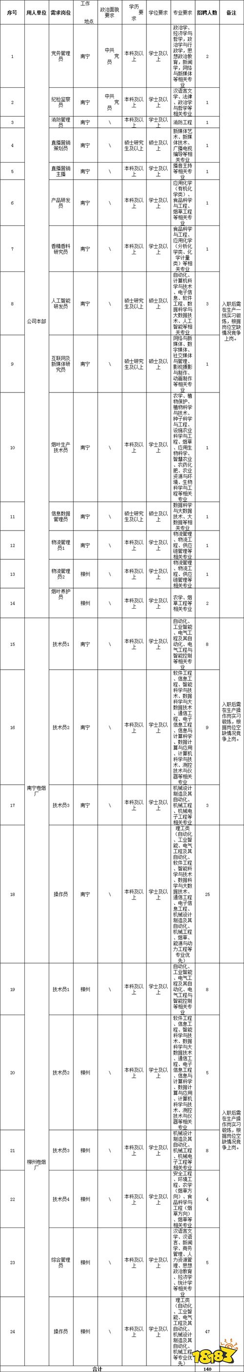 广西中烟2022年公开招聘员工140名,用人单位、需求岗位、招聘专业、人数、要求、入职后安排等信息如下: