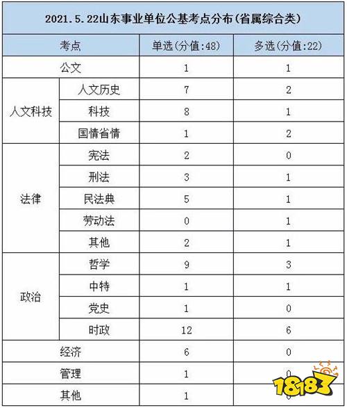 公基具体考试内容,包括:法律法规、政治经济理论、时政方针、科技知识、省情省况等基础性知识。如,2021年山东事业单位统考,公基考点分布如下: