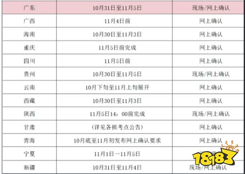 我省报考点全部施行网上确认,网上确认时间为:11月1日-4日。