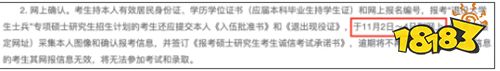 于11月2日~4日到网上(报考点指定网址)采集本人图像和确认报考信息,并签订《报考硕士研究生考生诚信考试承诺书》,逾期将不再办理。 未确认网报信息的考生其网报信息无效,将无法参加考试和录取。