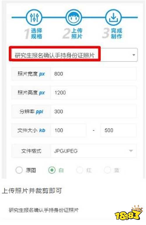 在照片规格中,搜索找到【研究生报名确认手持身份证照片】