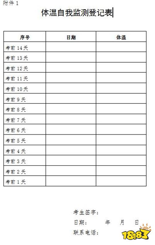 2022年全国研究生考试将于12月25日开考,本次考试各省都发布了疫情防控要求通知,下面是研究生考试体温自我检测登记表,需要的考生赶紧下载哦。