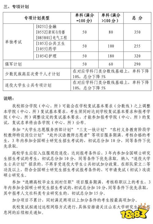 三、山东大学2022考研专项计划分数线
