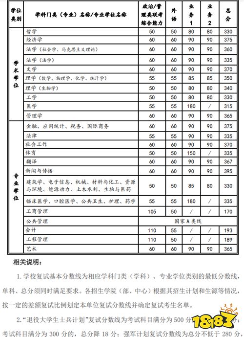 中国计量大学研究生招生复试分数线公布,2022年“退役大学生士兵”专项计划的复试分数线总分不低于273分(不限单科分),共有12个招生指标,下面是各科分数线总表。