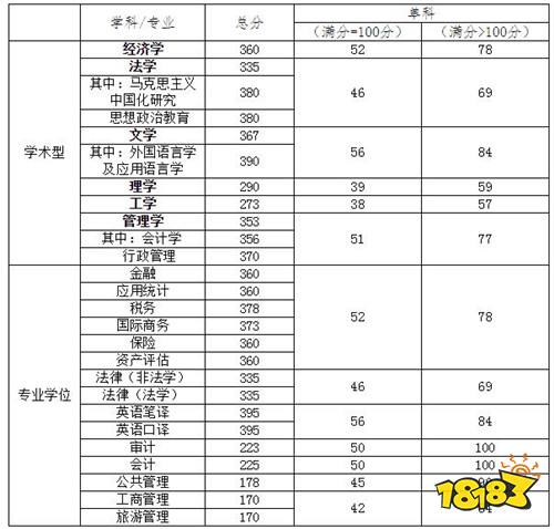 天津财经大学2022年硕士研究生各学科(专业)复试分数线