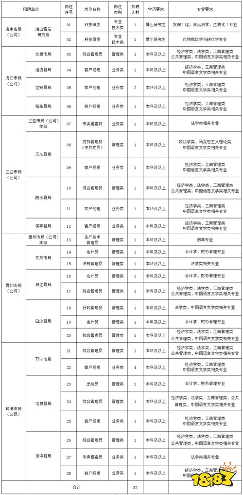 因工作需要,海南省烟草商业系统面向社会公开招聘,现将有关事项公告如下: