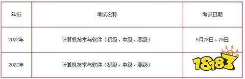 中华人民共和国人力资源社会保障部发布《人力资源社会保障部办公厅关于2022年度专业技术人员职业资格考试计划及有关事项的通知》,2022年计算机软件水平考试时间确定如下。